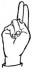 На ћирилици написано МИЊА БАДРИЋ састоји се из 10 слова [?]. Исписано ћириличном једноручном азбуком за глувонеме: